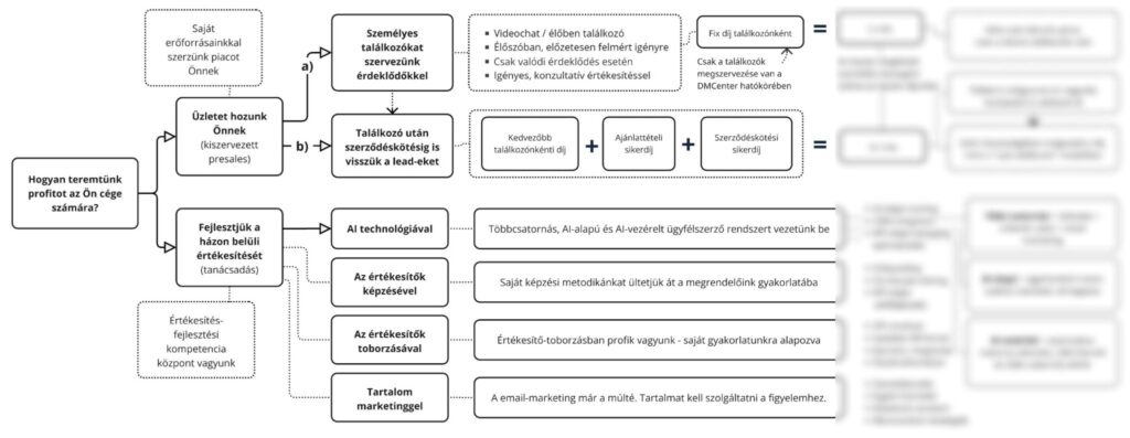 If your company does not currently have the capacity to build an internal sales operation, we take this on for you: we generate interest and can manage leads all the way through to contract signing. We arrange meetings where you face genuinely interested decision-makers with pre-qualified needs — not cold leads, but screened, relevant prospects. The essence of our model is simple: you pay only for real value, and only after it is delivered.